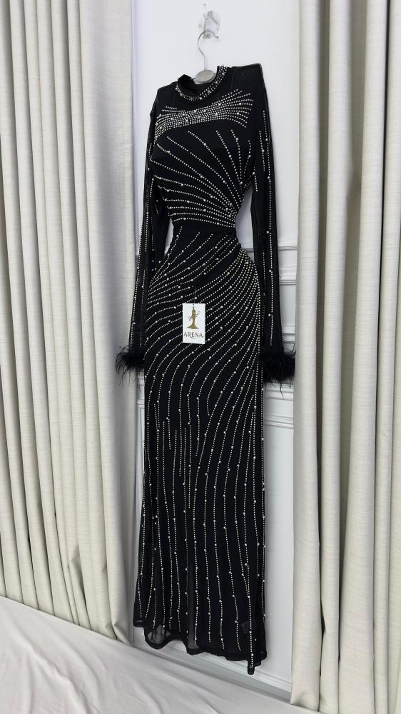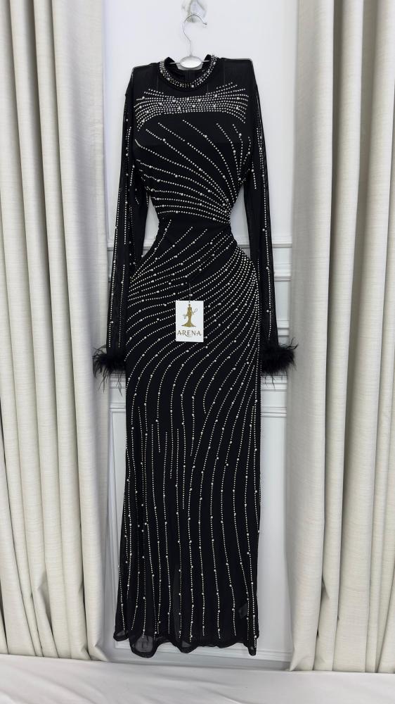 - الاسم: فستان سهرة اسود مزين بفصوص لامعة