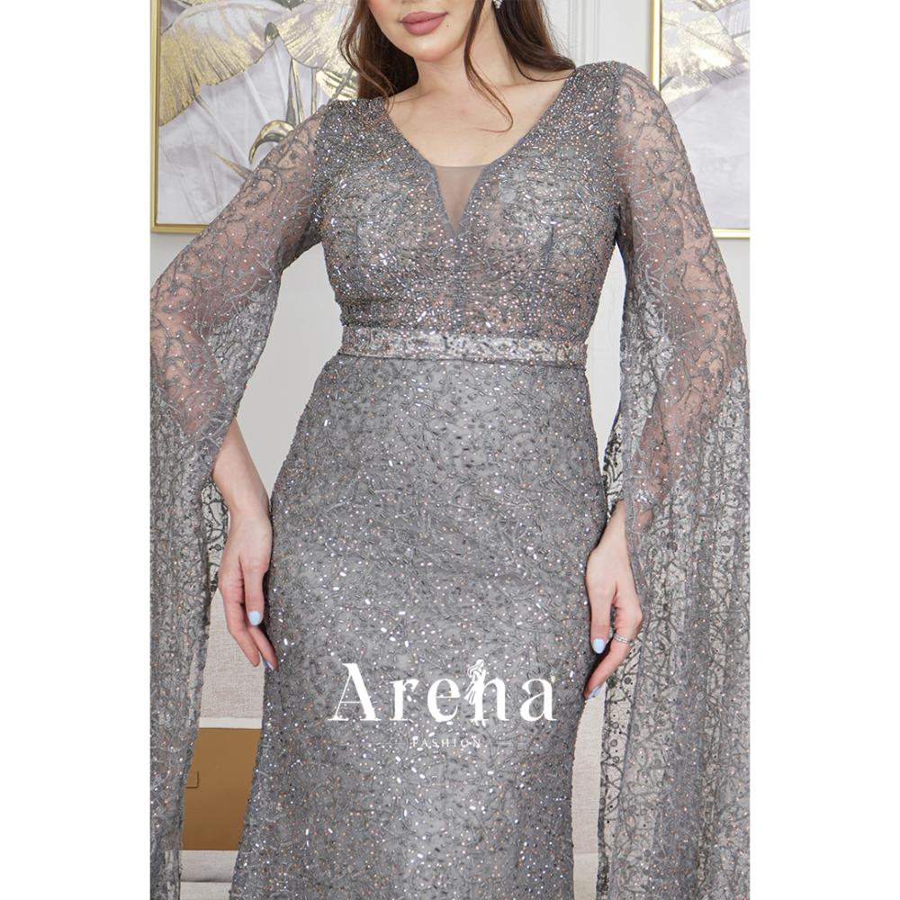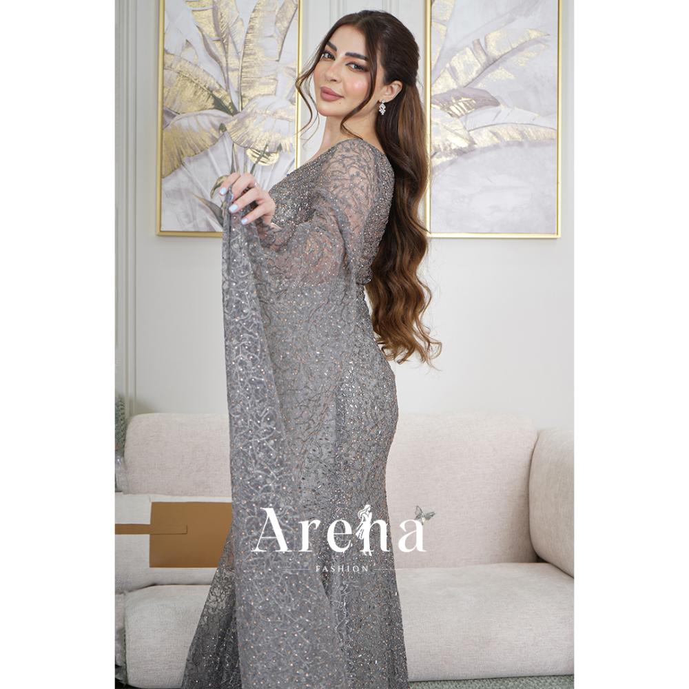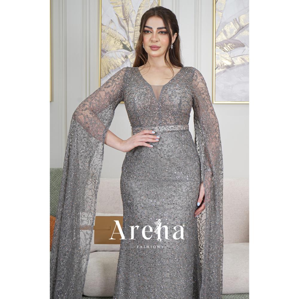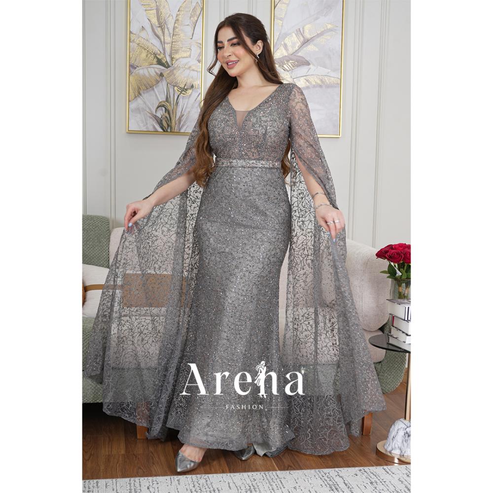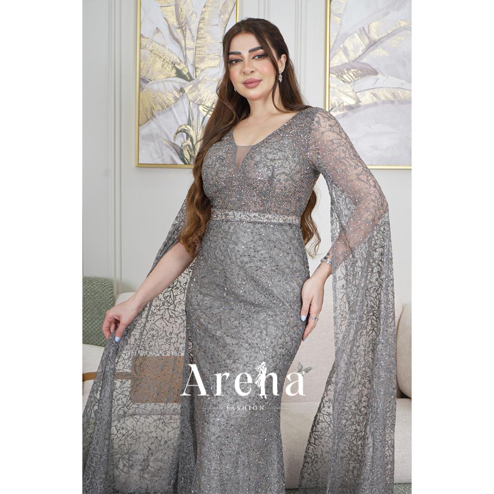 فستان تل اصلي مطرز كمبيوتر وفصوص ومرايا مبطن بكريب ناعم خفيف بالاضافة الى حزام من نفس القماش